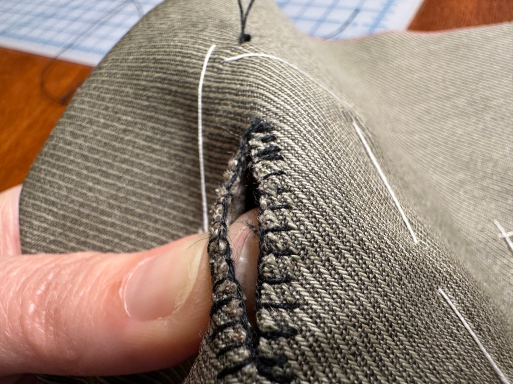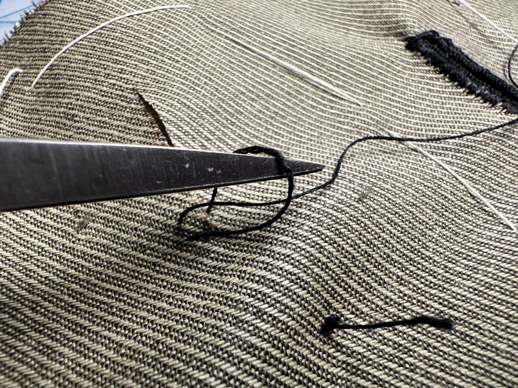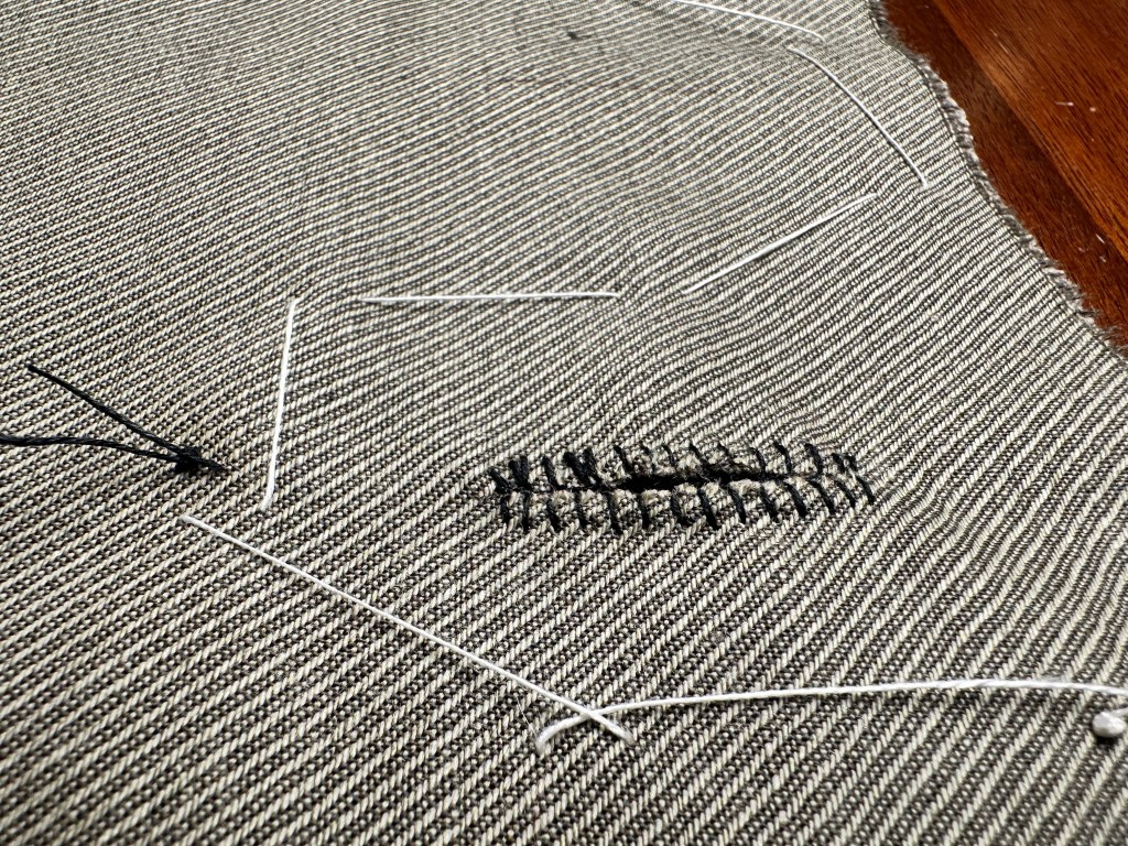 It was a good thing I did a few practice buttonholes, as I’d forgotten the order of things and had to check MM a few times. I’ll do another two right before turning to making them on the doublet.